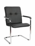 Стул офисный с фиксированным положением спинки и сидения на металлическом каркасе с хромированным защитно-декоративным покрытием. На каркасе имеются пластиковые элементы для предотвращения самопроизвольного скольжения. Эргономичная конструкция стула выполнена в обивке из искусственной кожи- 100% полиэстера, покрытого 100% ПВХ. Подлокотники с мягкими накладками из этого же материала. Стул не предназначен для длительного сидения лиц весом свыше 100 кг.