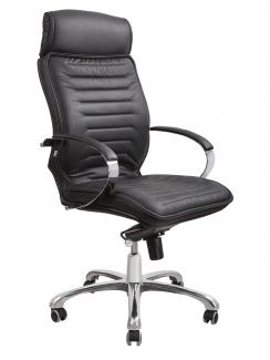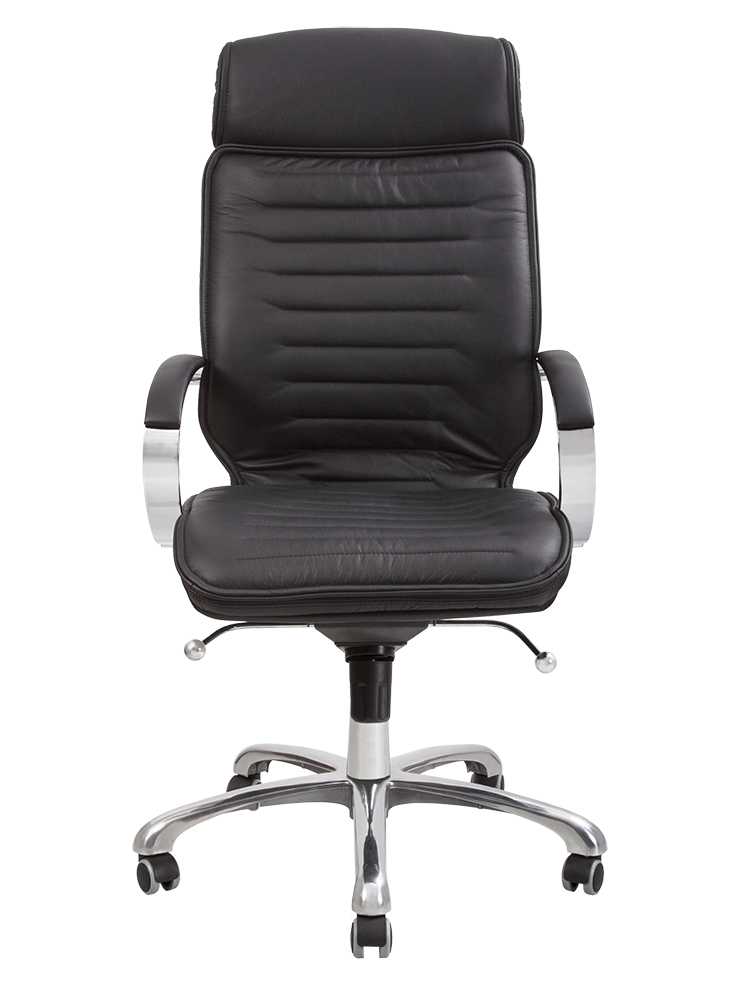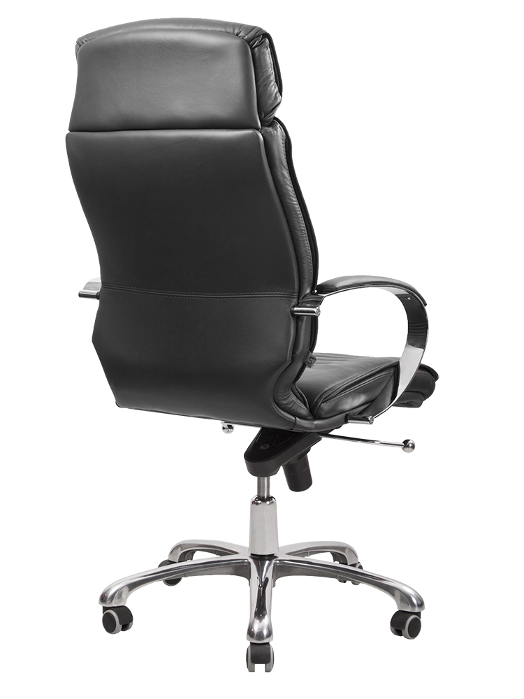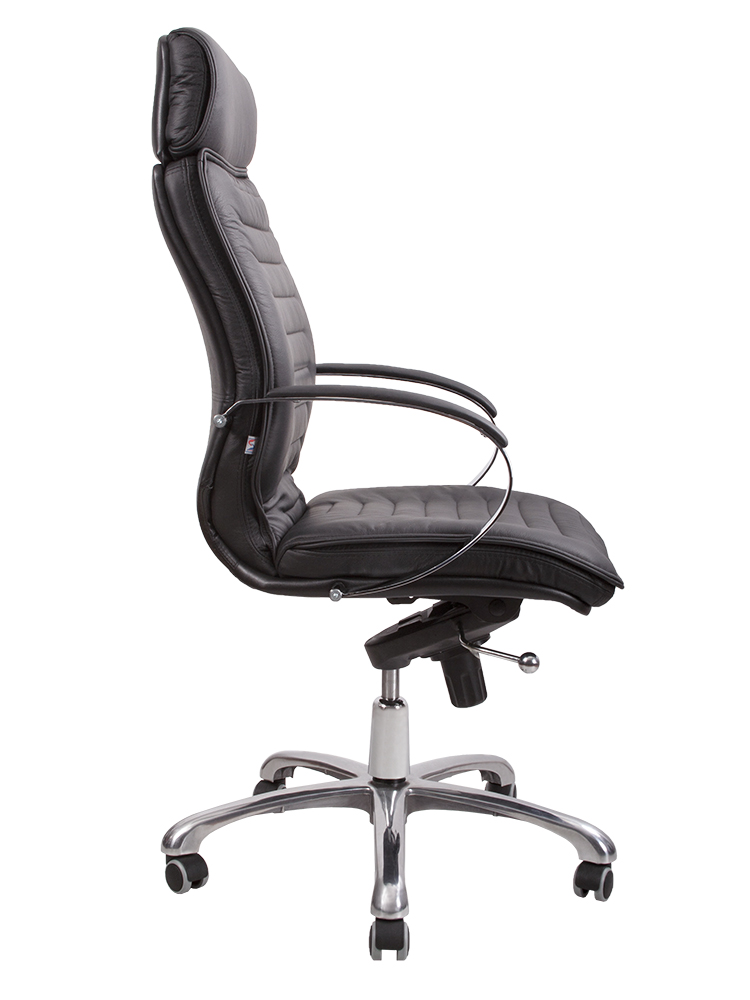 Alia chrome представляет собой прекрасное творение дизайнерской мысли итальянских разработчиков. Большой широкий подголовник плавно перетекает в удобную эргономичную спинку кресла. Каркас кресла монолитный (спинка и сидение — одно целое), изготовлен из прочного букового шпона. Материал обивки кресла — натуральная кожа класса Lux черного цвета. Оригинальные фигурные подлокотники изготовленные из прочной стали с хромированным покрытием и мягкими кожанными накладками. Кресло оснащено механизмом качания Multiblock, позволяющий регулировать угол наклона спинки и сидения с фиксацией в нескольких положениях, а так же высоту сидения относительно уровня пола. Крестовина изготовлена из литого полированного алюминия повышенной прочности. Полумягкие ролики отлично подходят для паркета или ламината, не царапая его.