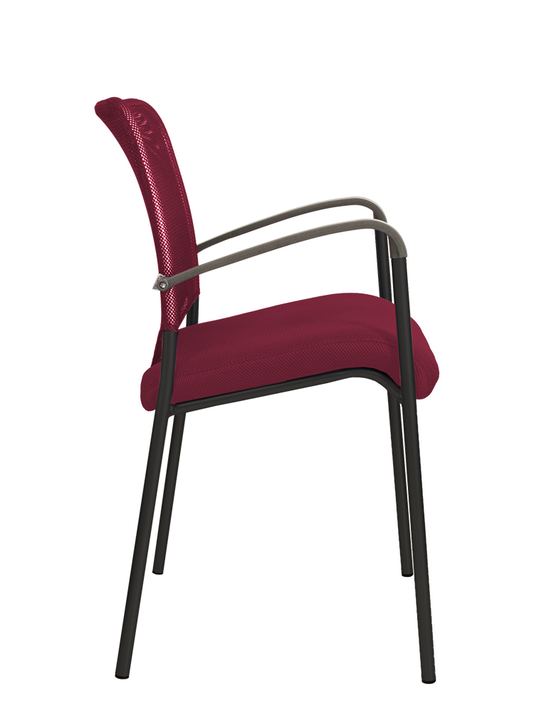 Офисный стул Amigo black ARM, зарекомендовал себя как простой и в тоже время очень надежный стул для посетителей. Прочный металлический каркас, окрашенный в черный цвет. Удобные подлокотники из черного пластика. Материал обивки сидения — сендвич «W» бордового цвета, а спинки — сетка бордового цвета. Эргономичная спинка держит осанку, а наличие сетки позволяет спине «дышать». Данный стул гармонично сочетается с любыми сетчатыми креслами для персонала.