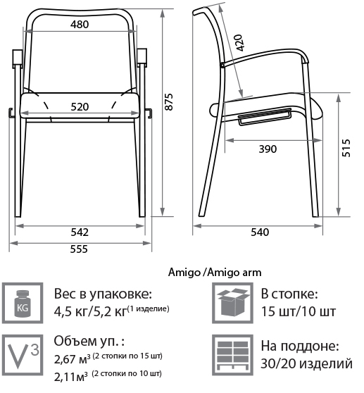Eсли вам необходимо купить офисный стул д( приемную) для офисного персонала, для конференц-зала или зала для совещаний - офисный стул для посетителей Amigo станет отличным решением вашей задачи. Популярная модель со спинкой из дышащей сетки. Спинка стула имеет эргономичную конструкцию. Она поддерживает позвоночник и предохраняет его от деформации. Стул»имеет широкое сидение со специальным передним краем (для повышения качества кровообращения). Рама стула производится из металла, окрашенного порошковой краской в цвет аббревиатура «silver». Сиденье выполнено в ткани сетка ТА - двухслойный обивочный материал, выполненный на основе синтетической нити, хорошо сохраняет форму.