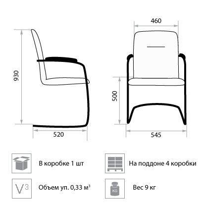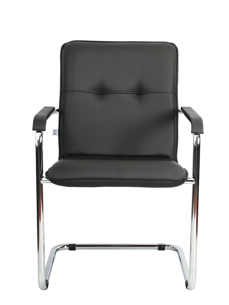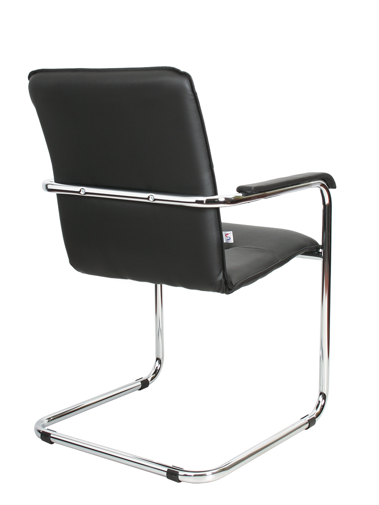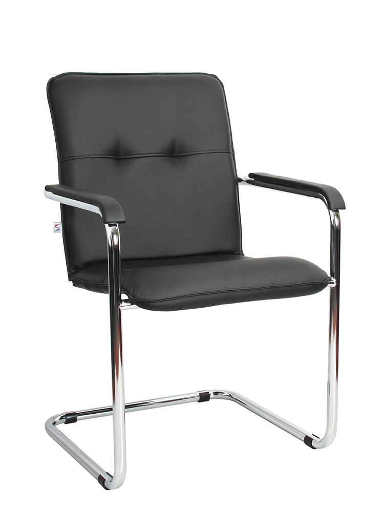 Стул офисный с фиксированным положением спинки и сидения на металлическом каркасе с хромированным защитно-декоративным покрытием. На каркасе имеются пластиковые элементы для предотвращения самопроизвольного скольжения. Эргономичная конструкция стула выполнена в обивке из искусственной кожи- 100% полиэстера, покрытого 100% ПВХ. Подлокотники с мягкими накладками из этого же материала. Стул не предназначен для длительного сидения лиц весом свыше 100 кг.
